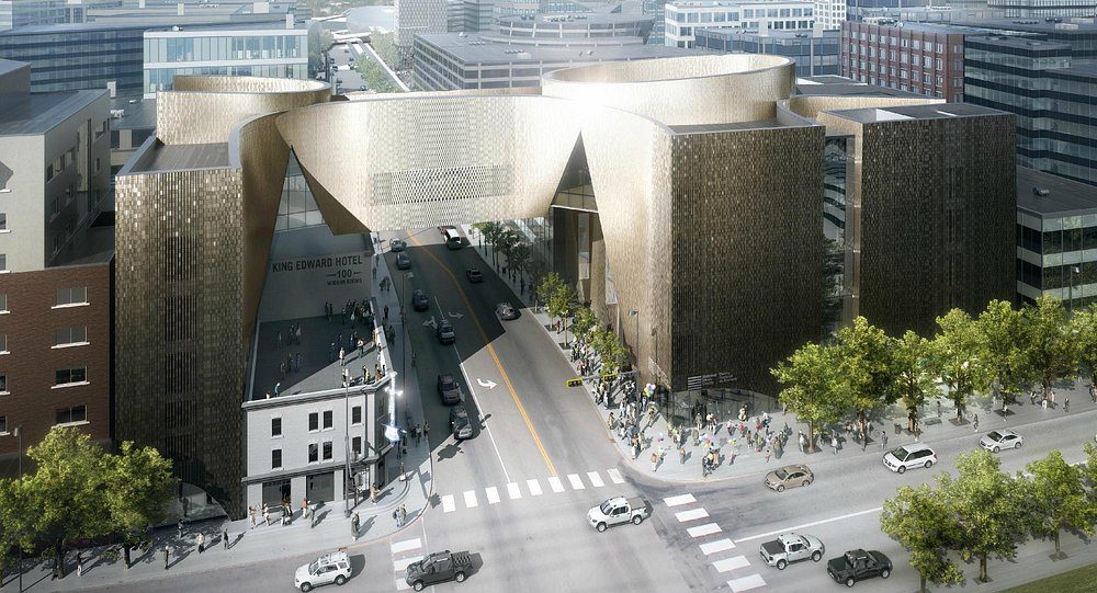 The building was created as a series of nine interconnected towers showcasing diverse programs, collections, and offerings. Allied Works Architecture developed the design. The structure incorporated the legendary historic King Edward Hotel, a local blues venue, while providing new space for the Cantos Music Foundation.