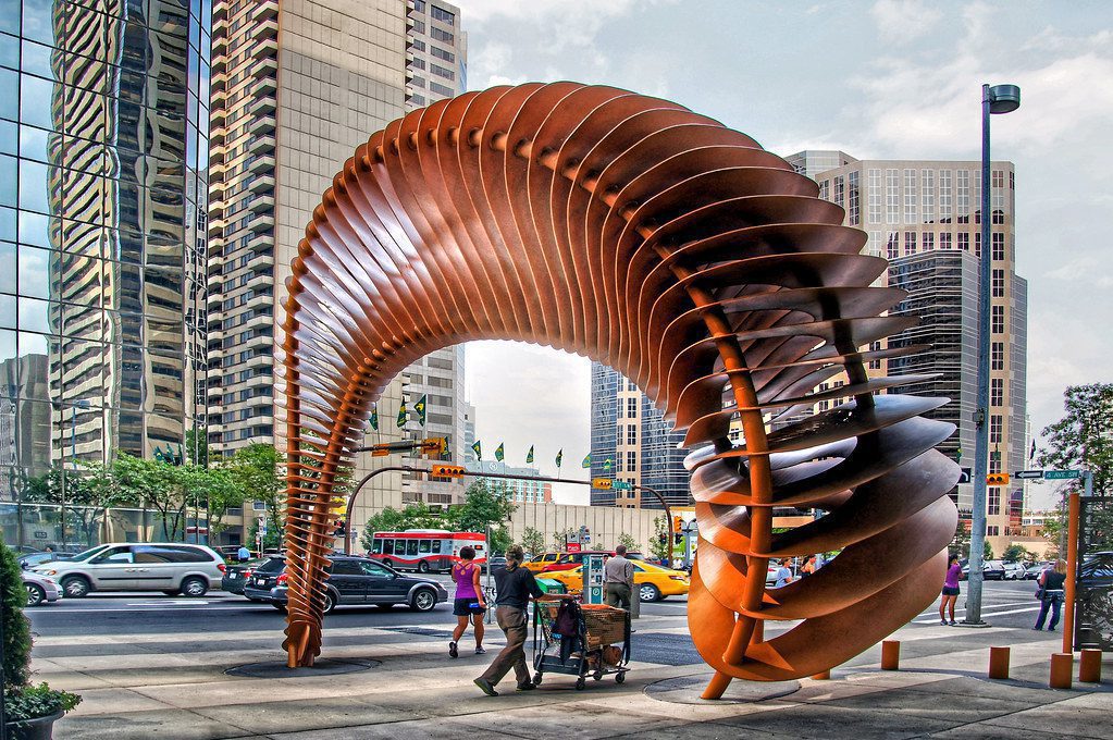 In 2001, when the TransCanada Tower was completed, there was a need to address high wind attacks around the building. McEwan’s finished work of art on this site had to stand for a sudden, violent storms. This prompted McEwan to design another stainless steel “fence” as a functional windbreak. Therefore, the monument installed in this place performs a practical function, and also demonstrates the strength and power of nature.