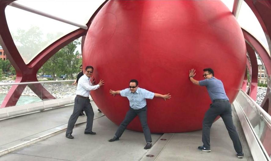 Due to its interesting construction, it is often called the “bridge to nowhere”. Tourism Calgary has repeatedly used the Peace Bridge in their promotional materials, as it has become Calgary’s trademark. During Canada’s 150th anniversary celebrations in 2017, a giant red ball was placed on the bridge.