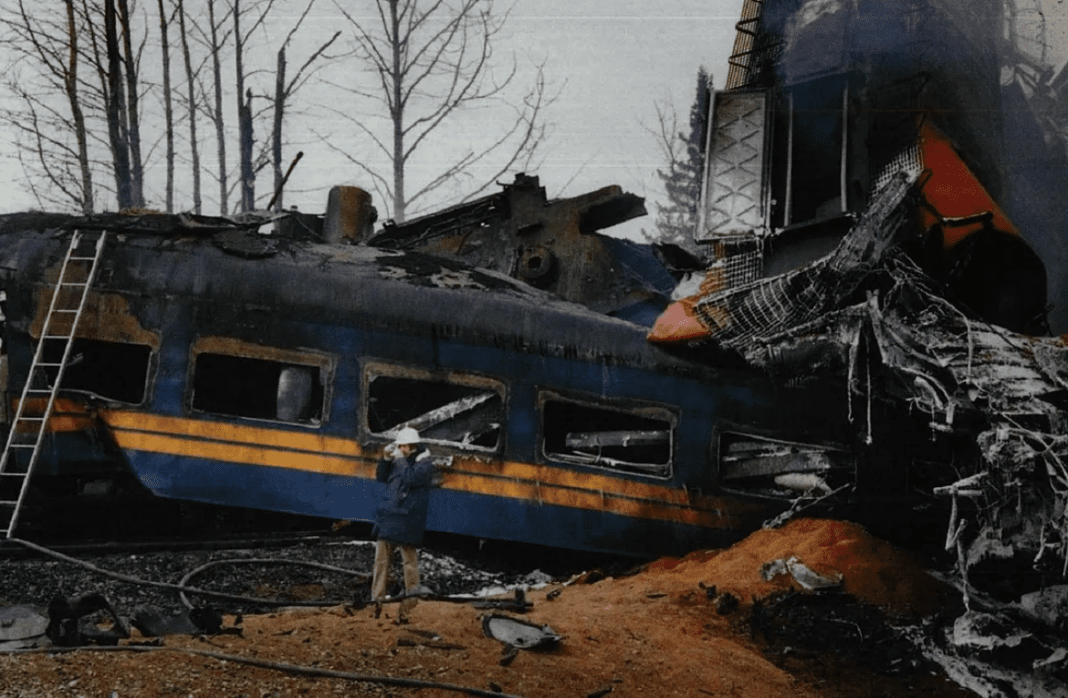 Прохладного субботнего утра 8 февраля 1986 года в 16 км к востоку от городка Хинтона грузовой поезд Канадской национальной железной дороги (CNR) проехал сигнал «стоп» и столкнулся с пассажирским поездом Super Continental компании Via Rail. В результате аварии погибли 23 пассажира и члены экипажа обоих поездов, приехавшие из 5-ти провинций, еще 95 человек получили ранения.