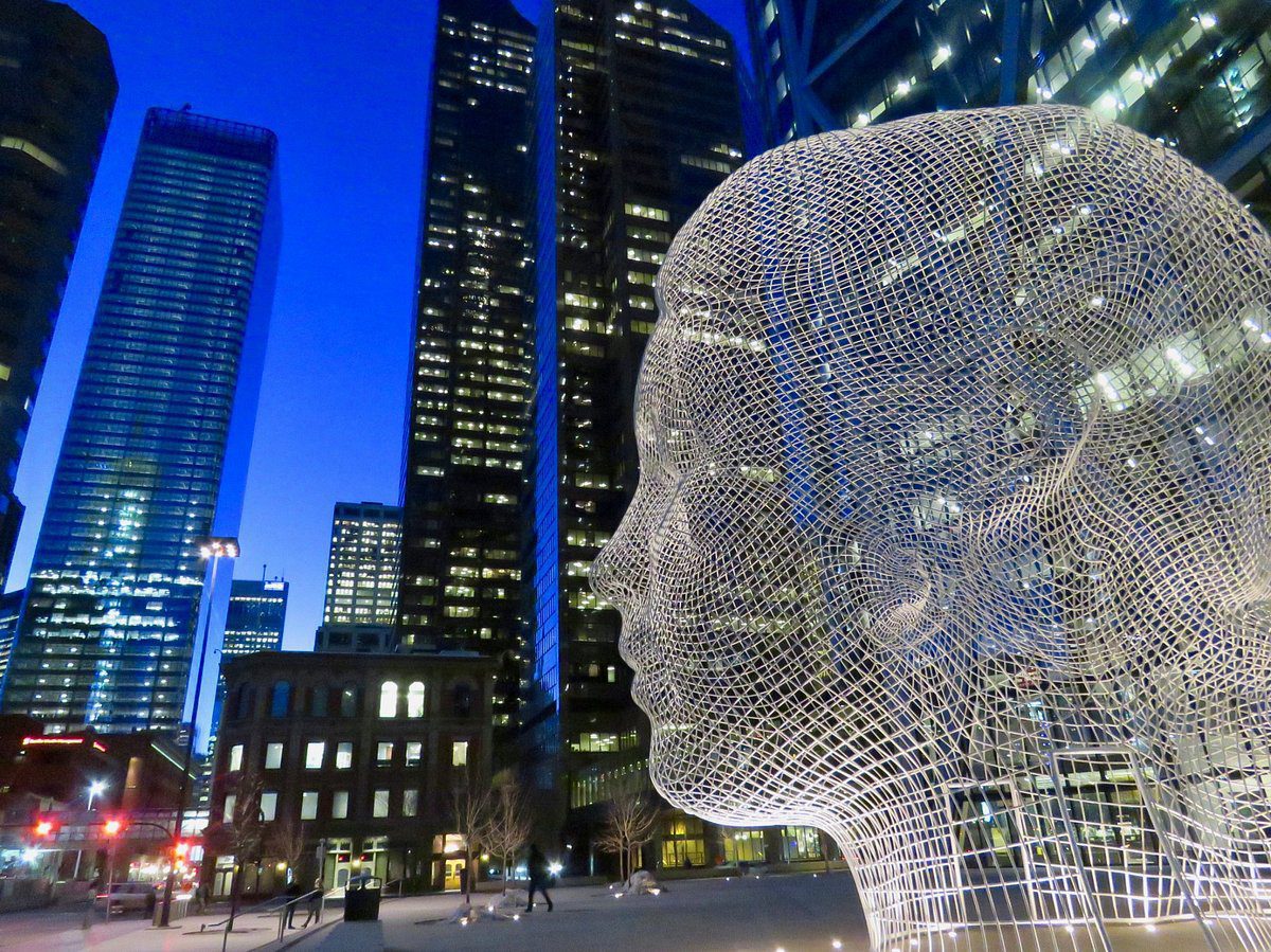 Эту огромную 12-метровую металлическую скульптуру головы маленькой девочки разместили на Центральной улице перед башней The Bow. Ее создал испанский скульптор Жауме Пленса.