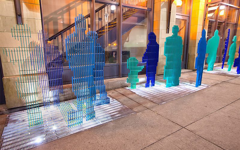 Инсталляция «Транзитная история» состоит из 30 скульптур людей вдоль платформы LRT 7 Avenue и Center Street в центре Калгари. Фигуры изготовлены из стали, тщательно отделаны пескоструйной струей и искусно окрашены.