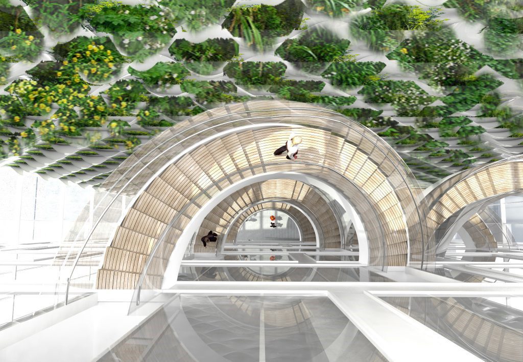 Інтер’єр зосереджений навколо 4-поверхового центрального атріуму, увінчаного мансардним вікном. На нижніх поверхах розташовані кімнати для зустрічей, а на верхніх – книжкові стоси та читальний зал. Під головним вестибюлем розмістилися театр, конференц-зали та невелика кав’ярня.